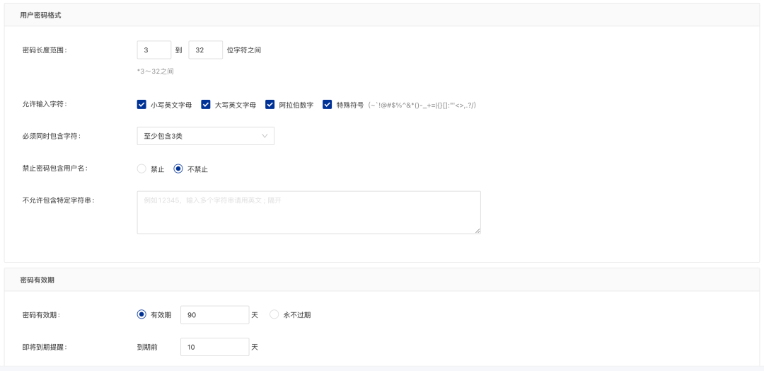 可视化密码策略,统一安全配置:管理员可根据合规要求,自定义密码规则。如强制包含大小写字母、数字、特殊符号,设定密码长度 ≥12 位,开启“每 90 天必须更换一次”“历史 5 次密码不可复用”“禁止连续相同字符”等管控规则。策略配置后自动同步至所有管控终端,保障统一的安全配置。