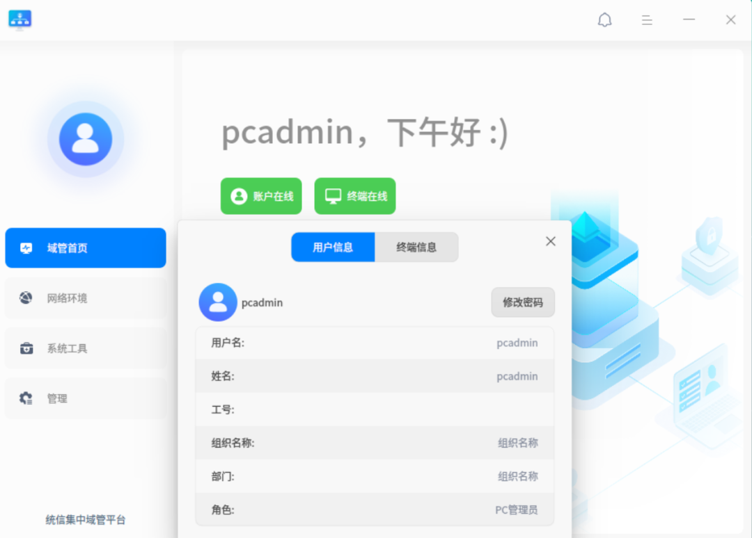 自助密码重置,运维零介入:员工需要修改密码时,无需联系运维,直接通过统信集中域管客户端的密码重置入口,即可自主重置密码,彻底告别“找运维、等回复”的繁琐流程。