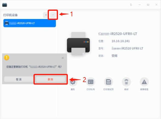 在打印管理器主界面,单击“—— ”,可删除选中的打印机。