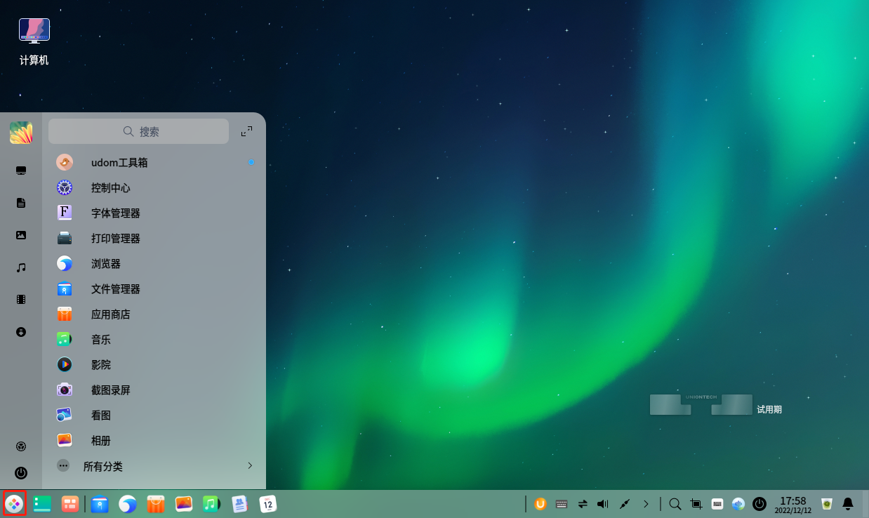 单击任务栏上的启动器图标 ,进入启动器界面。