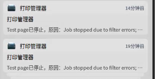 部分打印机安装好驱动之后打印测试页提示:Test page已停止,原因:Job stoped due to filter errors...,如下图: