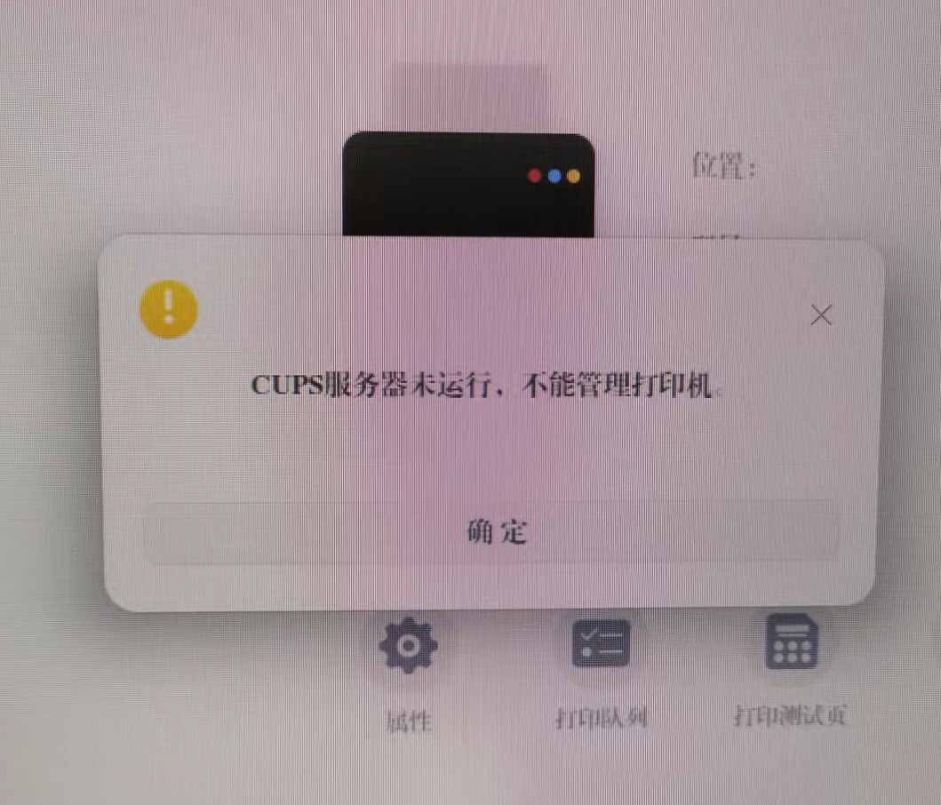 当启动“打印管理器”时,弹出提示窗口“CUPS服务器未运行,不能管理打印机”。