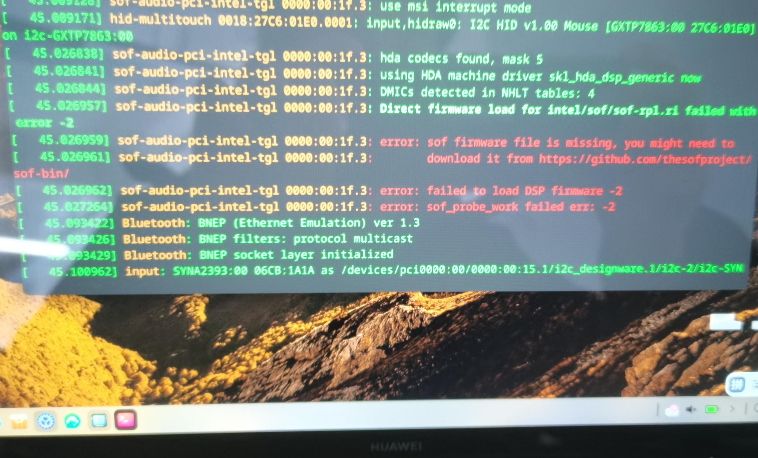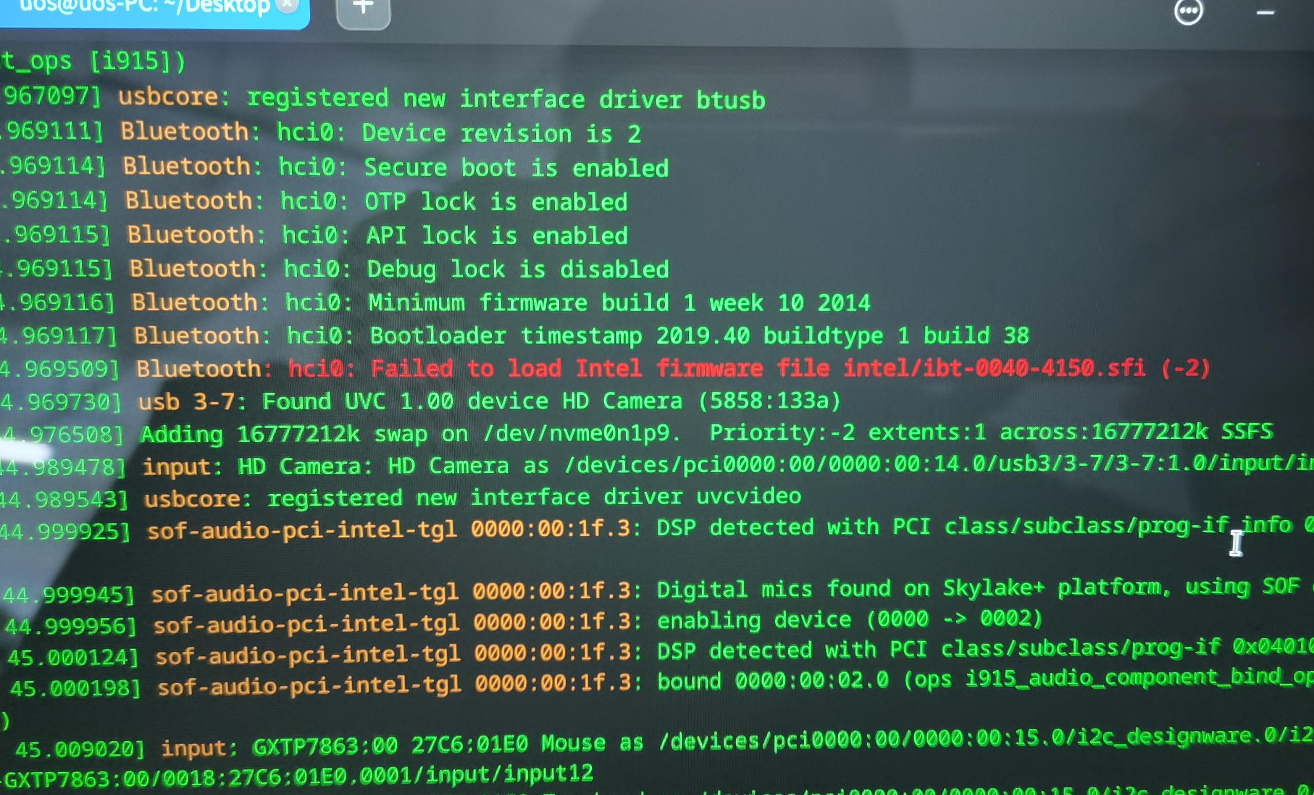 因为是利旧机型,UOS系统中未收录对应驱动,导致上述功能无法使用,dmesg日志查看有如下报错信息分别是无WiFi驱动、无蓝牙驱动、无声卡驱动: