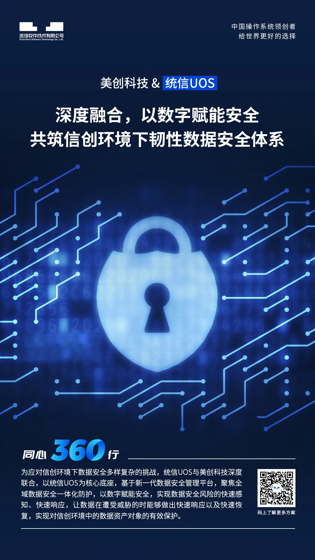 为应对信创环境下数据安全多样复杂的挑战,统信UOS与美创科技深度联合,以韧性数据安全体系,基于新一代数据安全管理平台(简称:DSM Cloud),聚焦全域数据安全一体化防护,以数字赋能安全,实现数据安全风险的快速感知、快速响应,让数据在遭受威胁的时能够做出快速响应以及快速恢复,实现对信创环境中的数据资产对象的有效保护。