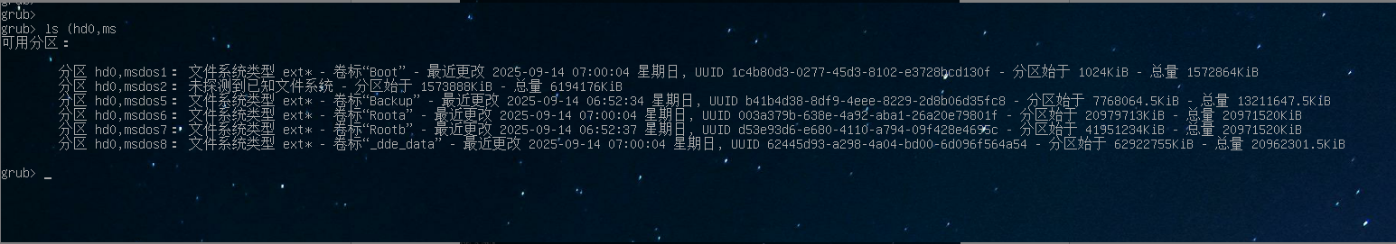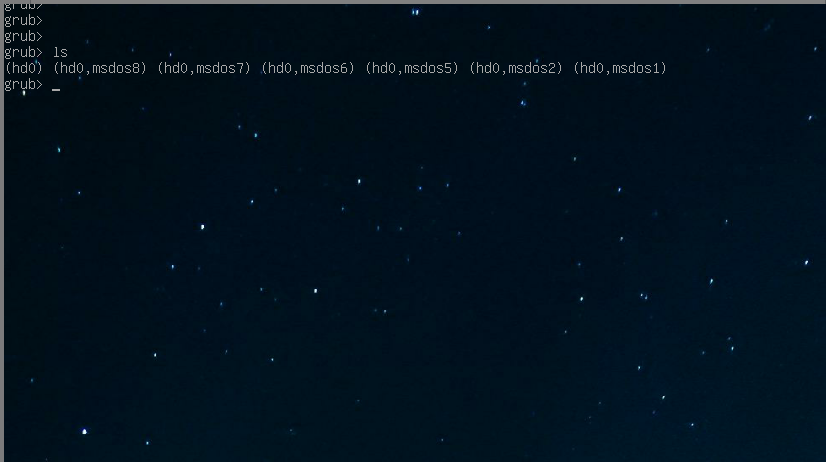 2、 输入ls 然后按tab按键,通过联想查看分区情况,定位boot分区所在的磁盘