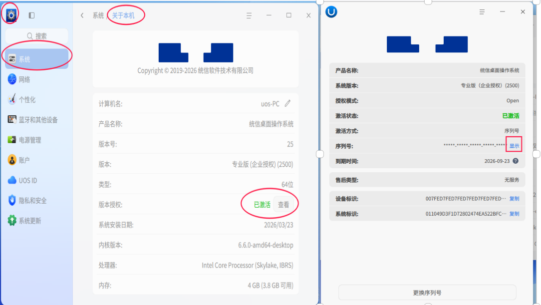系统激活码状态下,通过以下查看路径可以查看激活码,