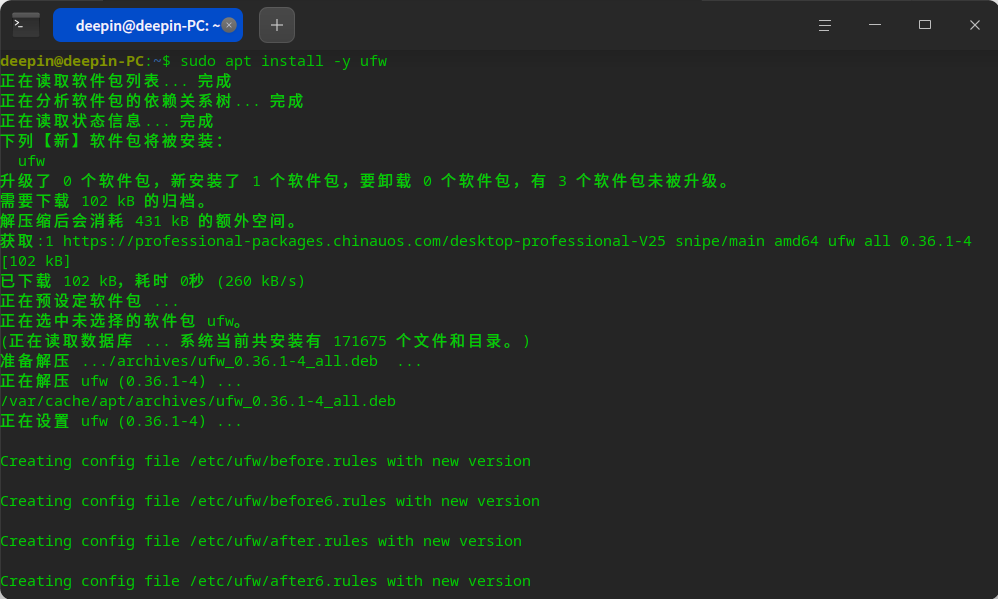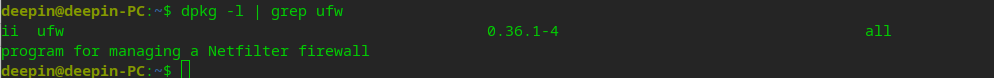 dpkg -l | grep ufw查看,输出如下则表示ufw已成功安装。
