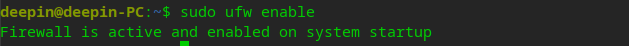 ufw enable启动防火墙软件。启动ufw防火墙,设置ufw防火墙开机自启。