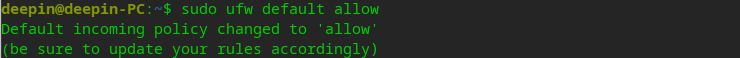 ufw allow/deny <端口号>/<可选:协议>步骤一