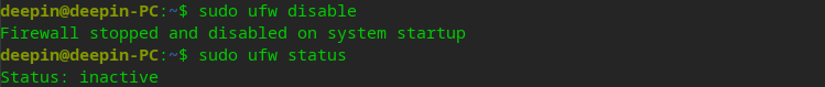 ufw disable 即可禁用ufw防火墙。防火墙处于inactive状态时配置将不再生效。