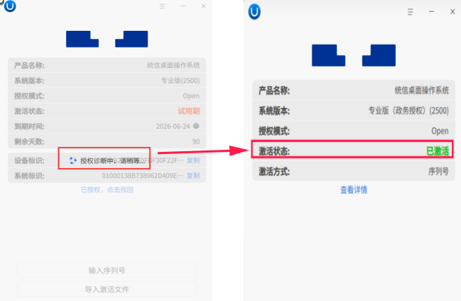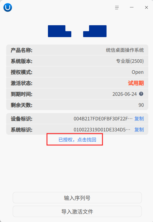 场景2:内网/离线环境找回授权,请参考“统信桌面专业版V25【授权自助找回】处理方法”文档。