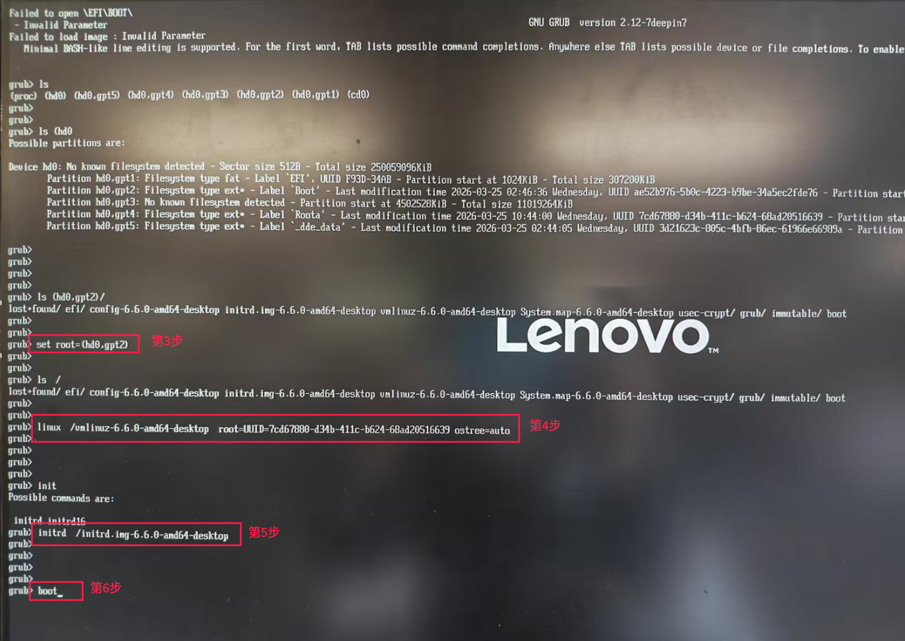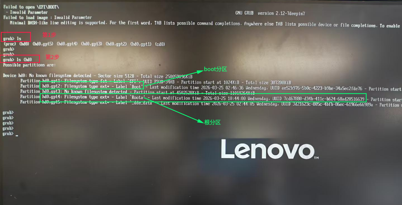 注意:此处(hd0,gpt2)信息需根据步骤二中实际查到的boot分区填写。