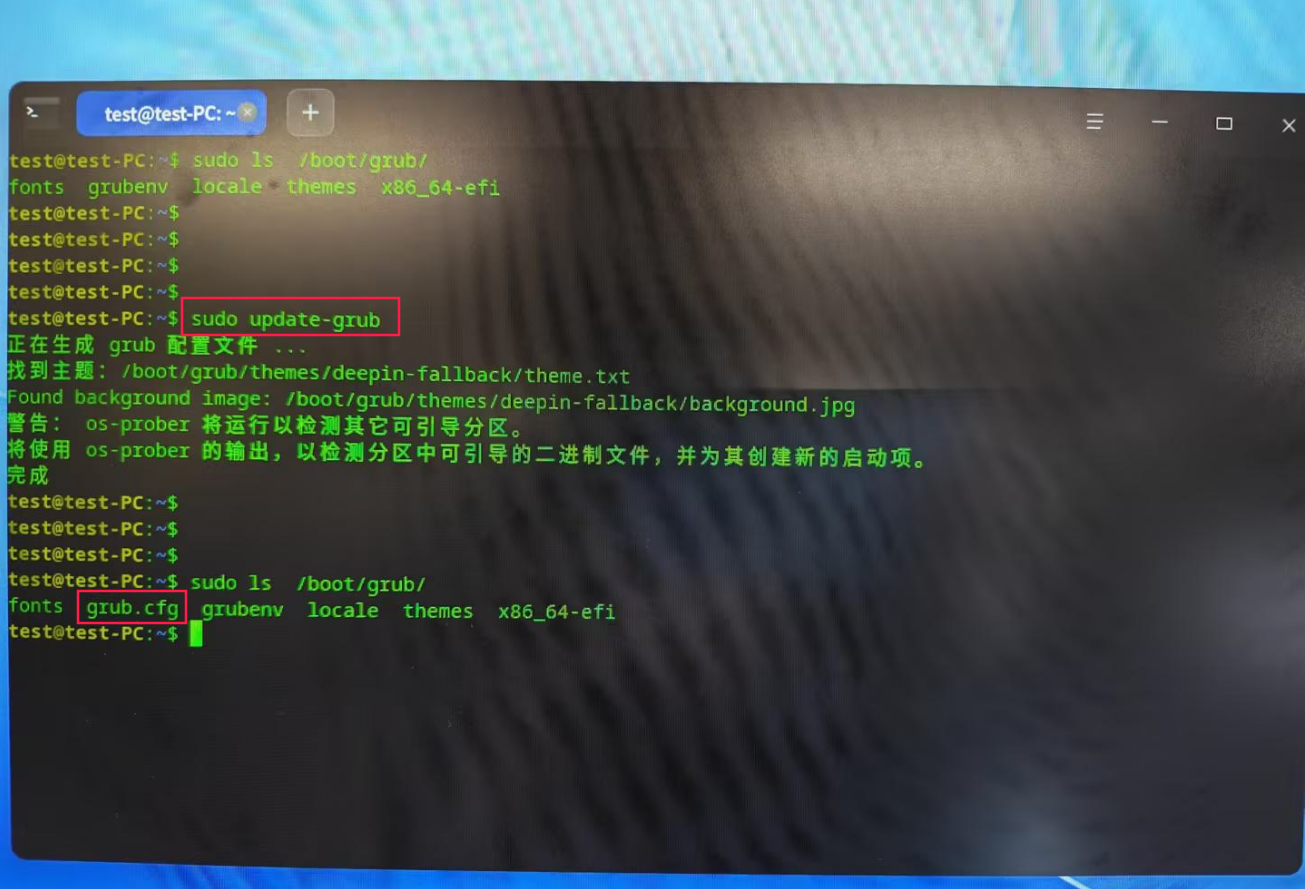 步骤七:通过以上方法进入系统后,修复grub引导文件