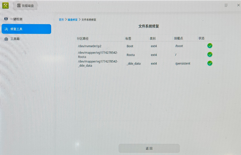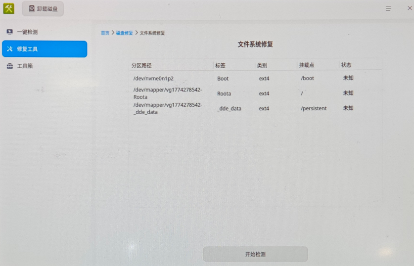 为提升UOS系统可维护性,降级运维成本,在系统安装镜像中集成了常见的检测与修复工具。