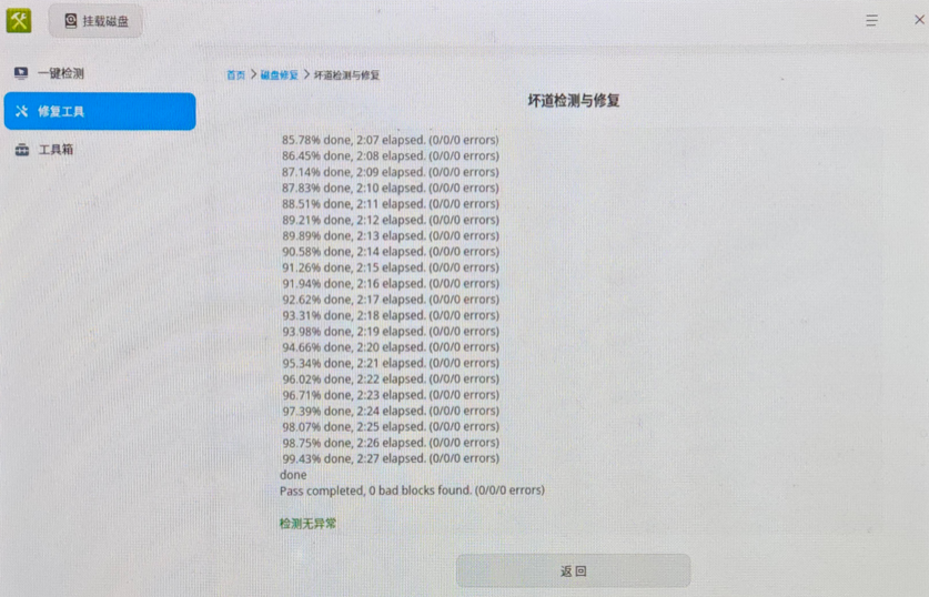 | 坏道检测与修复 | 全面扫描磁盘,检测并修复磁盘中的坏道 | ||