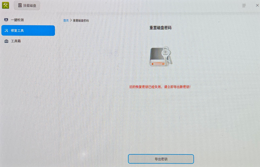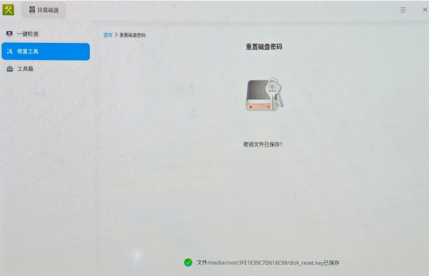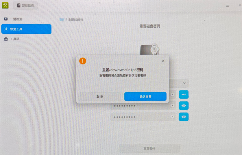 在“修复工具”中,点击打开“重置磁盘密码”。