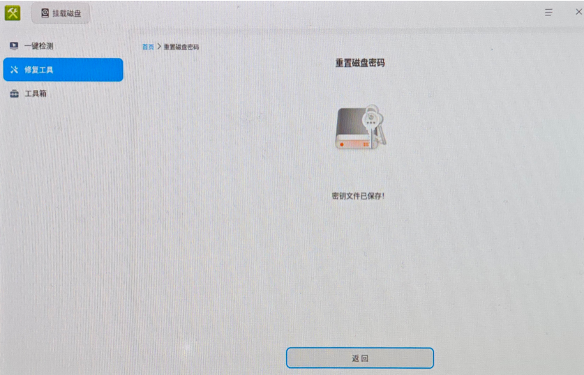 无须额外操作,自动跳转至如下界面,“重置磁盘密码”流程结束。