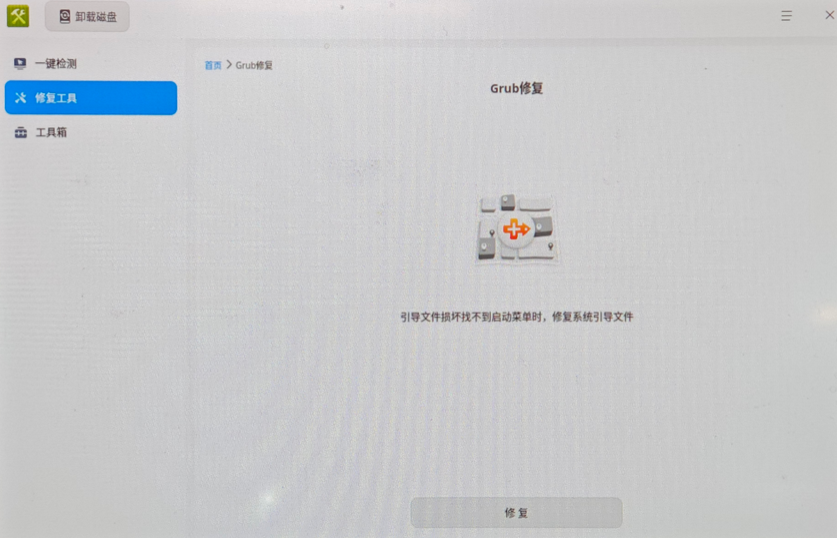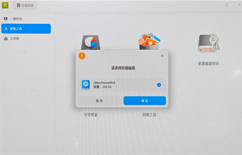 在“修复工具”中,点击打开“引导修复”,选择挂载磁盘。