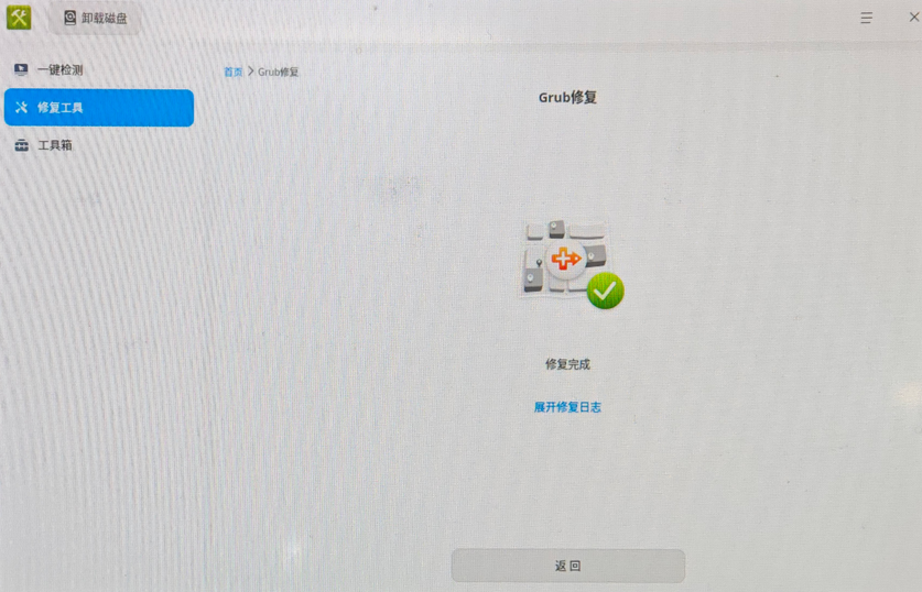 | 引导修复 | — | 引导文件损坏找不到启动菜单时,修复系统引导文件grub.cfg | |