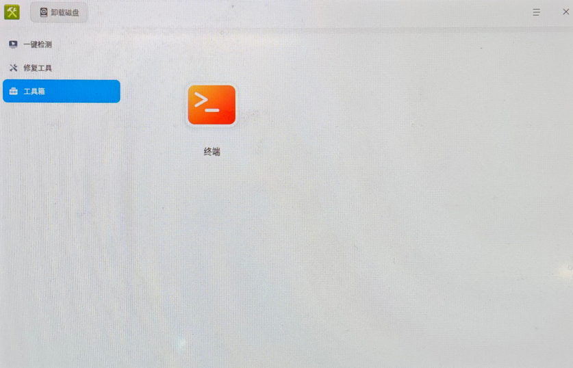 | 工具箱 | 终端 | — | 命令行模式,可以搭配左上角的“挂载磁盘/卸载磁盘”使用 |