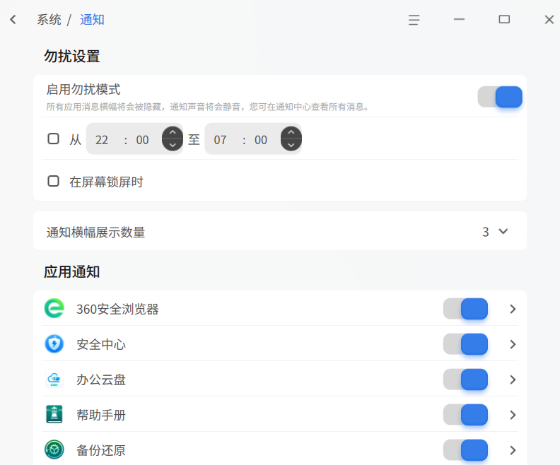 设置通知勿扰模式,开启或关闭某些应用的通知显示。