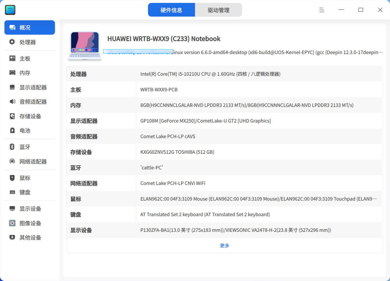 | 概况 | 展示操作系统内核信息及各硬件设备列表。 |