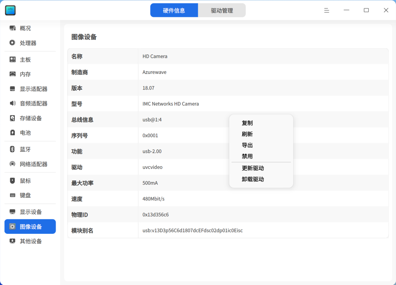 部分硬件支持更新/卸载驱动功能,可以根据右键菜单选项进行判断。
