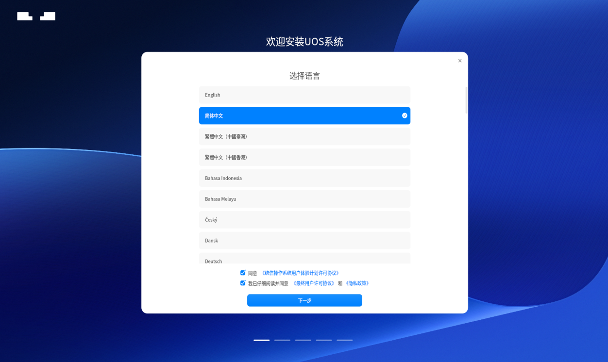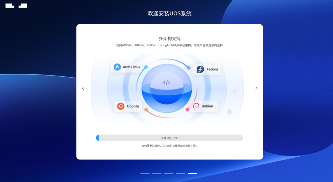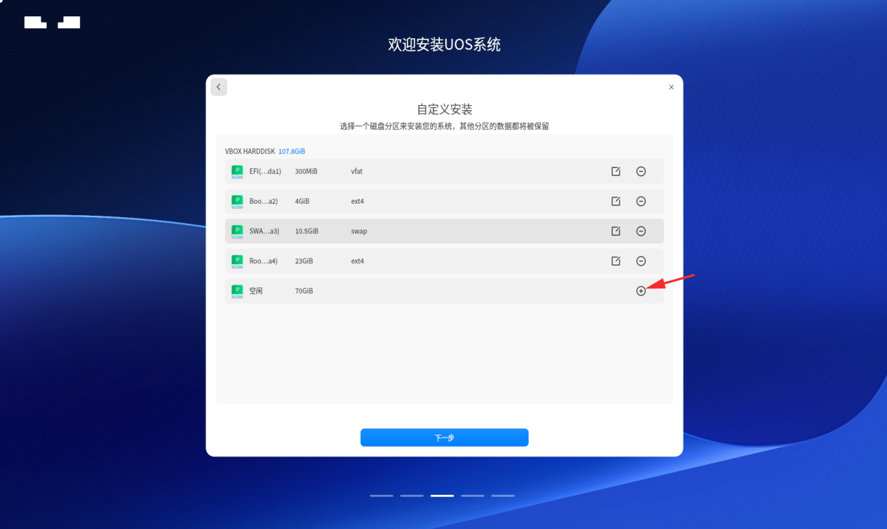 待所有的分区创建完成后,点击下一步开始系统安装,并按照提示完成UOS系统安装即可。