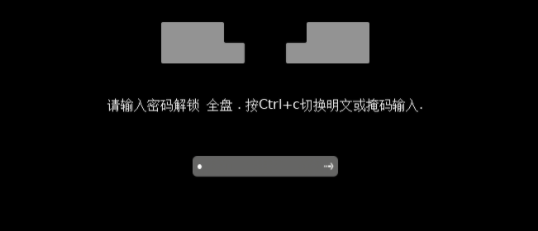 磁盘加密安装成功后,在系统启动时界面会出现密码框,如下图所示,输入正确的 密码后即可正常登录系统。