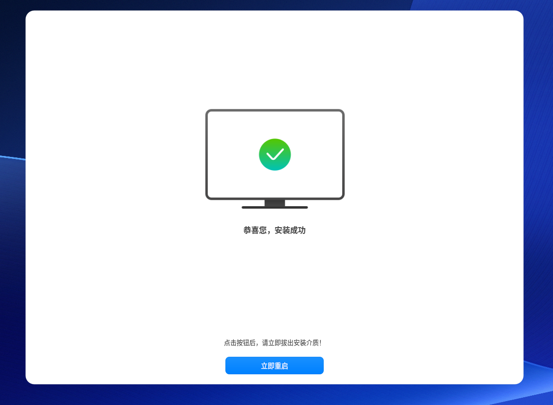 安装完成,立即重启