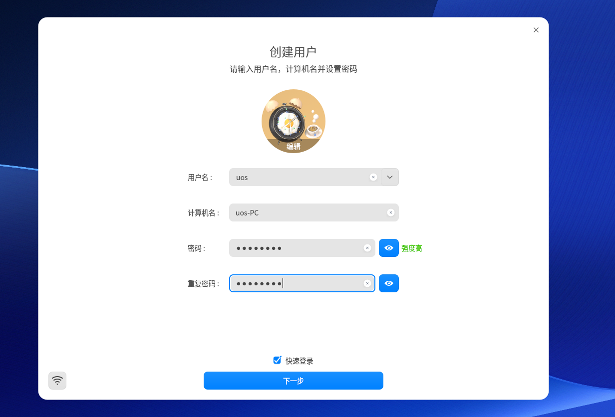 设置用户名及密码,并点击下一步
