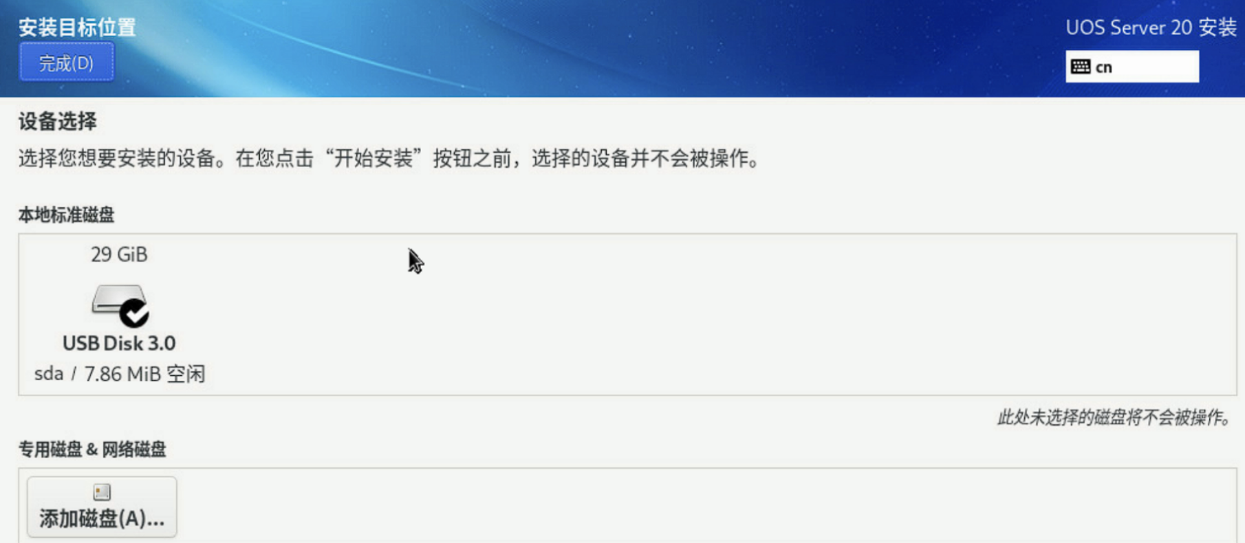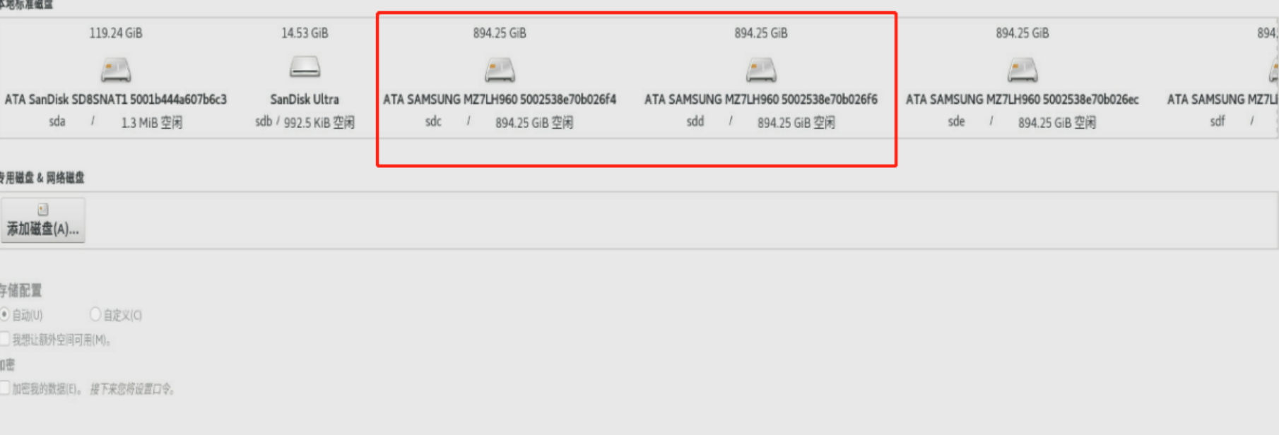 完成扫描后,可以看到HBA卡的硬盘信息,选择目标磁盘安装系统即可