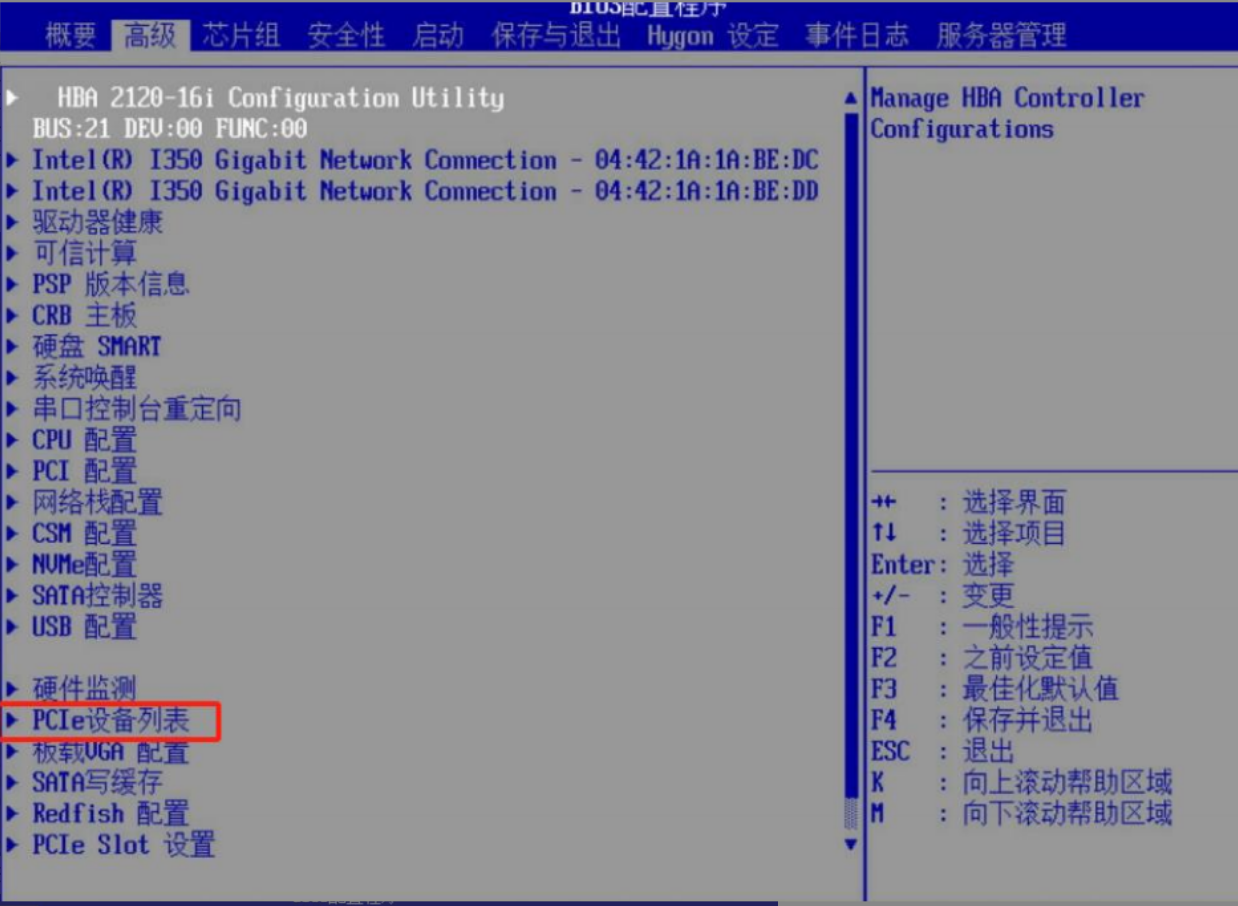 将主机 BIOS 下 PCle 设备列表中的存储设置为 UEFI模式
