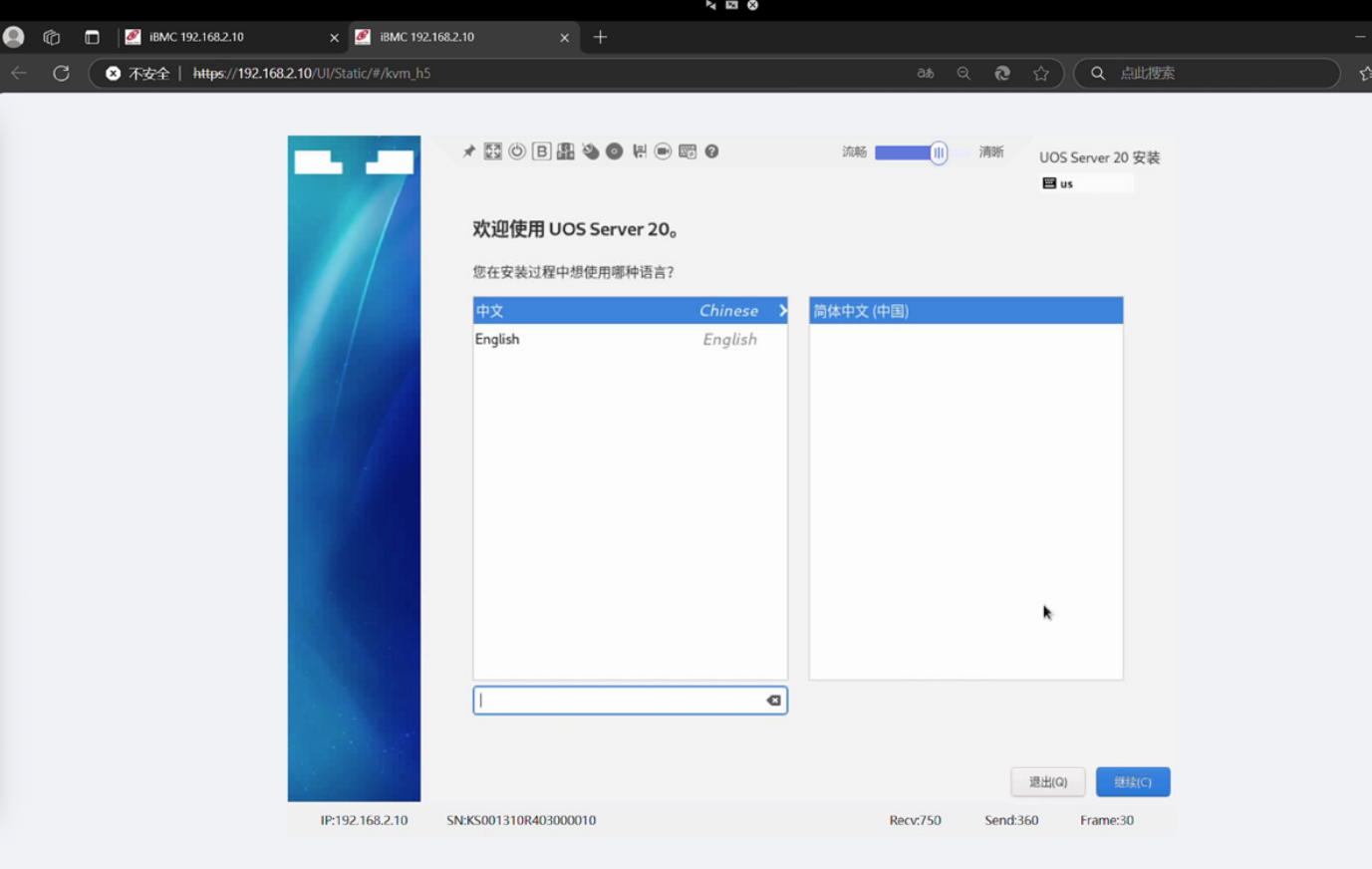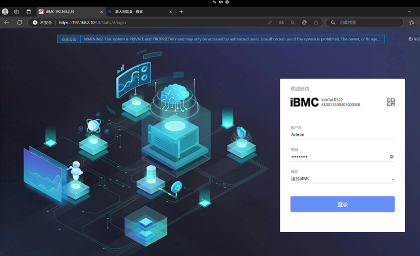 现场通过USB2.0的U盘无法引导安装系统,BIOS中默认已开启USB3.0控制器,但开机F2进入启动项时无法识别U盘。联系神州鲲泰微信客服,告知需要通过MGMT管理网口,进入iBMC系统进行系统安装。
