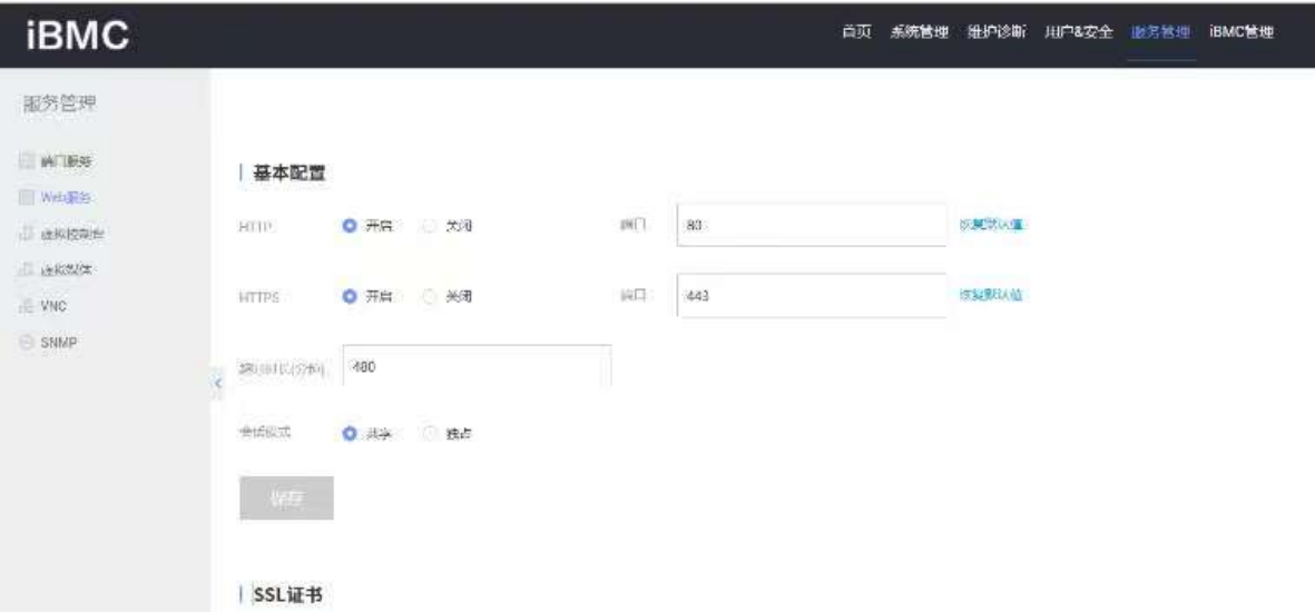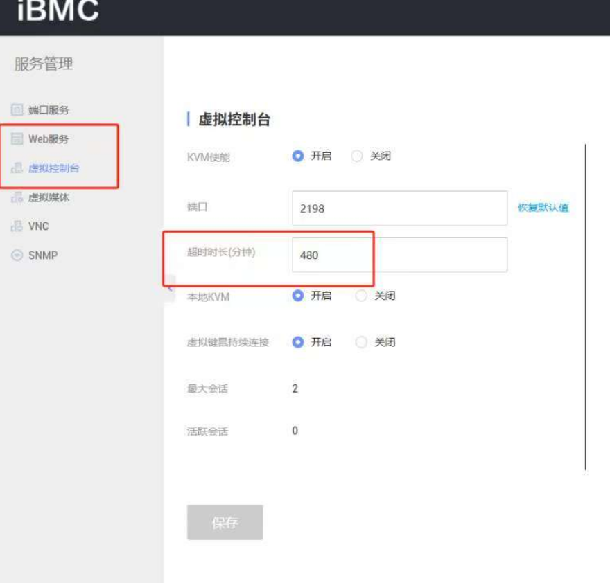 2、 进入服务管理设置,修改Web服务和虚拟控制台的超时时常,最高为480分钟。