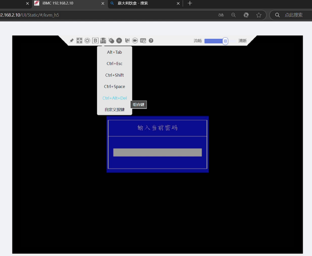 4、挂载成功后,点击组合键按钮,选择Ctrl+Alt+Del,进行服务器重启
