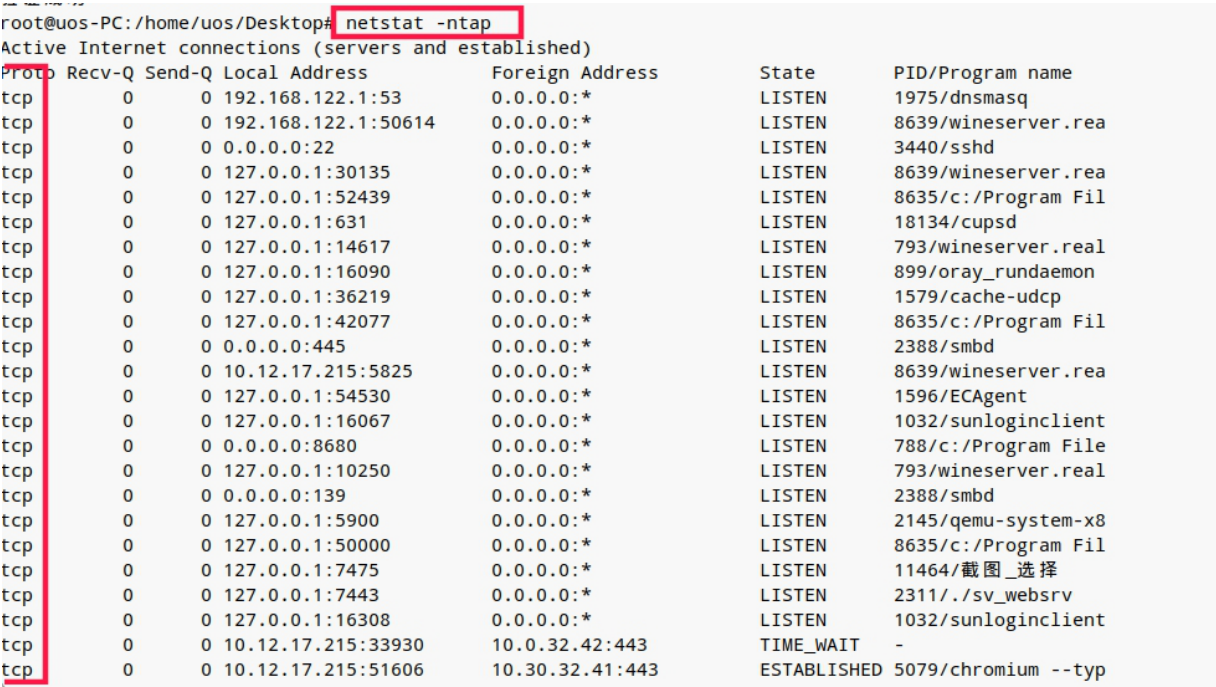 示例: 输入:ntstat -ntap (查看 TCP 协议)
