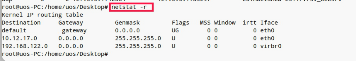 等同于查看路由表 route -n