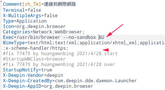 参数项:vim /usr/share/applications/org.deepin.browser.desktop