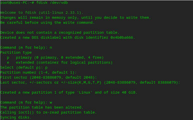 fdisk /dev/vdb