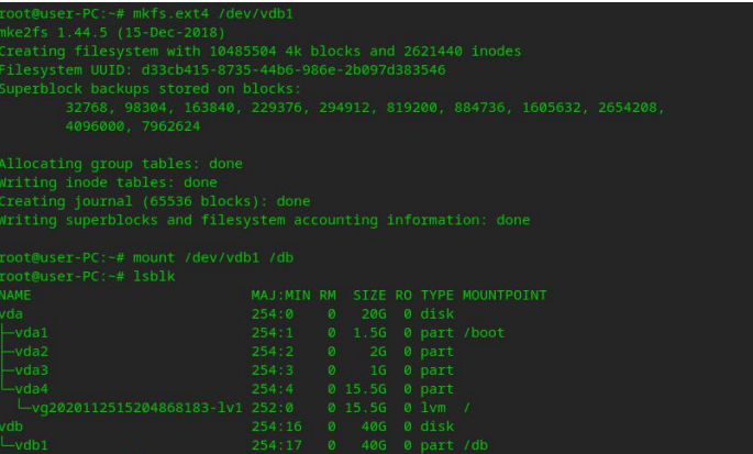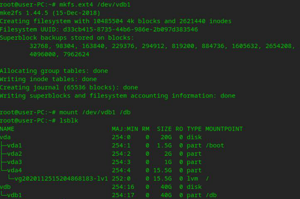 mkfs.ext4 /dev/vdb1