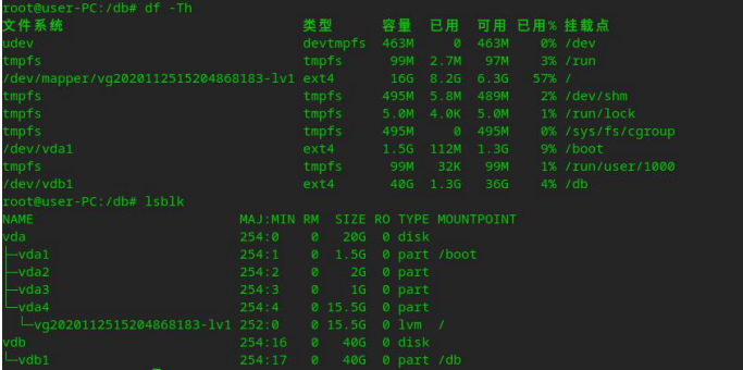 #格式化分区 mount /dev/vdb1 /db