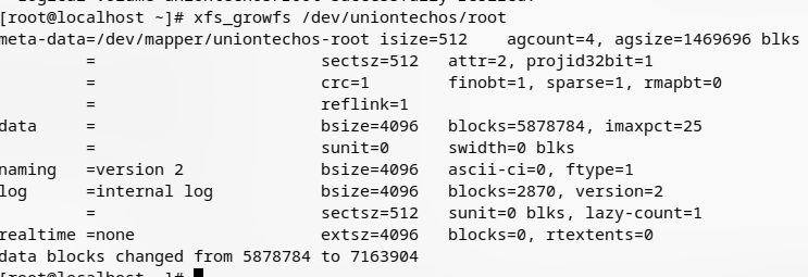 使新扩容的分区进行在线自动扩展XFS文件系统到最大可用大小。