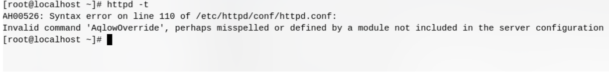 通过上图分析,配置文件 110 行存在模块书写错误,将 AqlowOverride 改为AllowOverride 即可